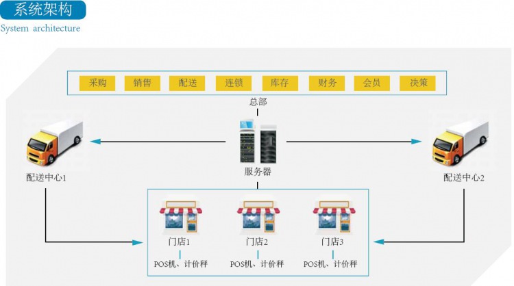 · 多层次的分布式网络体系结构设计,很好的支持商业企业的连锁经营模式