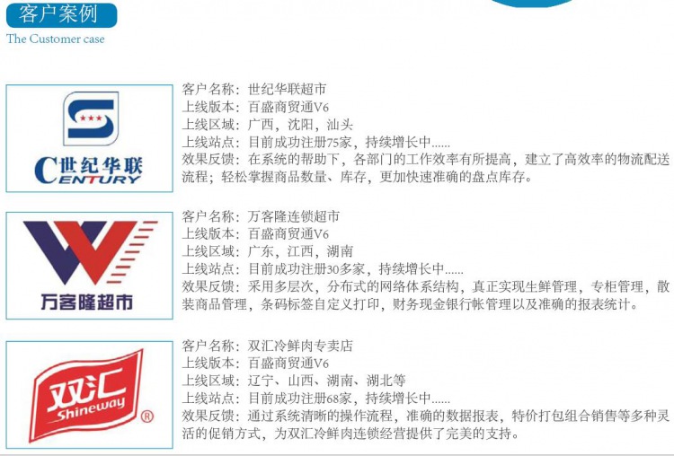 百盛商业管理系统是深圳百盛软件在多年行业经验的基础上,结合上万家客户的实际需求和国外先进的管理理念设计开发,专门针对中小型连锁企业的现代化信息管理系统。
