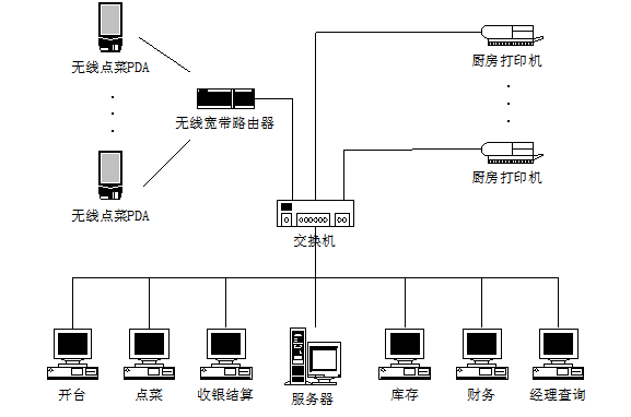 - < >针对不同客户的具体场地和要求,可组成有线或无线传输网络;支持触屏幕、键盘、鼠标及PDA(掌上电脑)操作;适应各种规模餐厅的不同需求。