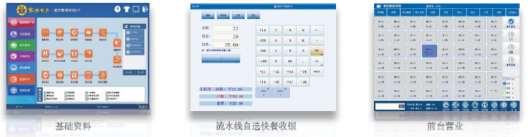 台的购、销存、成本分析、经营分析等完备的一体化功能。支持触摸屏、双屏、PC机、PDA、点菜宝等多种点菜模式,可